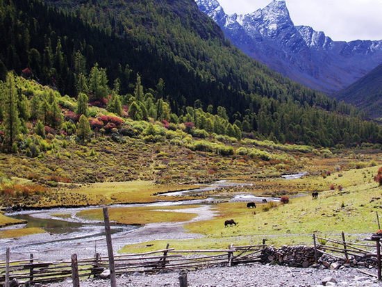 正如居住在这里藏羌民族的豁达坚韧、豪放不羁性格,玛嘉沟以雄壮、大气、和奇特的景色著称,同时又不失秀美、幽静的内涵。在海拔高达3200米的玛嘉沟景区,有着峡谷阶地、草甸、森林、飞瀑、溪流、高山湖泊、湿地、雪峰、极地冰川等丰富多彩的自然风貌。穿行其中,随时都可以见到国家一二级保护动物扭角羊,盘羊,黑熊,贝母鸡,血鸡,在这个人与自然和谐相处的世外桃源,它们在这片宁静的土地上自由地繁衍生息。
